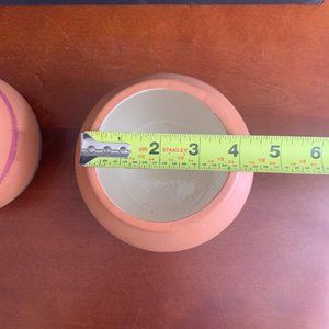 Measurements: Vase- 7.5" tall & about 4.5" across widest belly area. Bowl- 4.25in tall & about 5" across belly area.