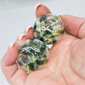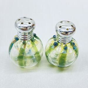 2 Handblown Miniature Small Glass Salt and Pepper Shakers Iridescent Striped
