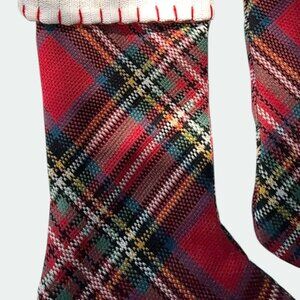 2 Handmade Holiday Deco Red Plaid Knit Christmas Stockings with White Cuff 18.5"