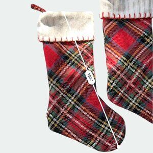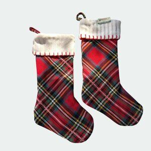 These stockings embody the warmth of the holiday spirit. Their red plaid pattern whispers tales of cozy firesides, while the white knit cuffs evoke snowy winter nights. They invite you to fill them with treasures, each stitch telling a story of festive joy and timeless holiday traditions.