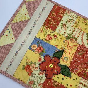 2 Handmade quilted table runners multicolored patchwork, spring & fall colors