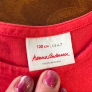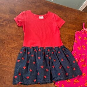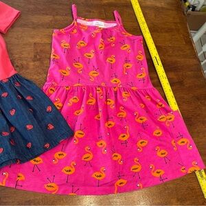 2 Hanna Andersson dresses red navy strawberry pink flamingo tank top size 6-7