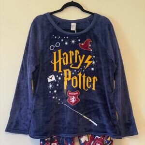 (2) Harry Potter L pajama set fluffy burgundy blue Gryffindor magic 9 3/4 train