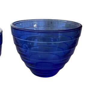 2 Hazel Atlas Cobalt Blue Glass Custard Dish Cups Bowls Ribbed Striped 3"