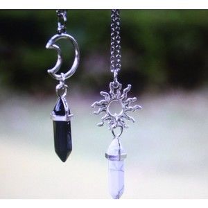 Crystal Sun & Moon set of 2 necklaces. 20" chain. Moon & black crystal. Sun & white crystal. Can be used as a pendulum. Healing & protection crystals. New in package.