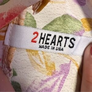 2 Hearts Women’s Medium Pink Peach Purple Floral Ruffled Sleeve Blouse Shirt