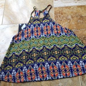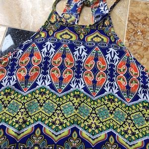20" bust 27" length Colors: royal blue, yellow, Kelly green, white, black and orange. Racer back is very sexy with a hole in the racerback and a button at the neck.
