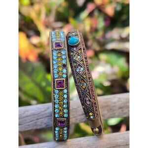 2 Heidi Daus Hinged Bronze Tone Multi Color Swarovski Crystal Bangle Bracelets