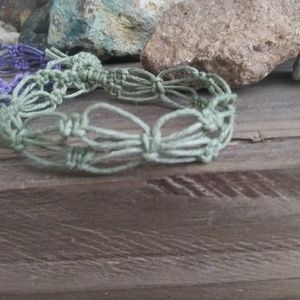 Made with soft hemp cord. Knot and loop connectors. Both are 8" in length. Flower design with Knot.