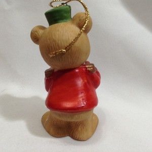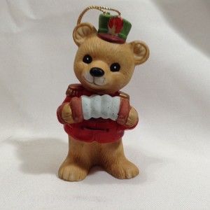 2 Homco Bears Musical Band 4" Christmas Ornaments Accordion Horn 5553 Gold string to hang - They will sit flat footed.