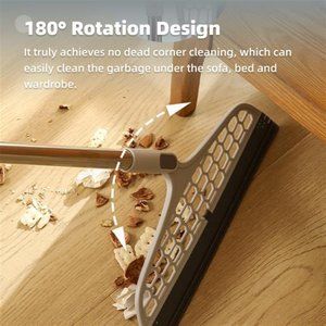 【Upgraded Broom Head】: The upgraded Magic Broom 180° is adjustable and has a mini scraper, the scraper can clean the rubbish on the table without getting your hands dirty, and it can also clean the windows. Can easily adapt to not easy to clean spaces such as, under the sofa, bed, and wardrobe, providing a more comfortable cleaning Angle. More humanized than the old magic sweeper broom, truly achieving a no dead corner cleaning.