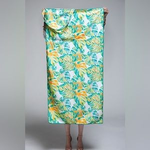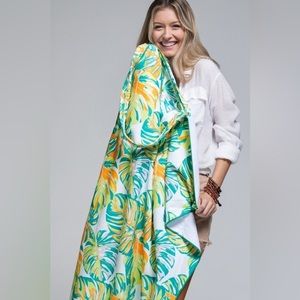 Plush 2 in 1 monstera leaf shoulder bag converts to a soft full size lightweight beach towel