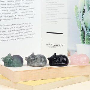 Crystal Carved Cat Figurine The symbolic presence of this cat Crystals Decor, designed to attract good luck, vitality, and a gentle, wise energy making it an ideal addition to your home, office, or as a meaningful gift. Crafted from polished natural stone, this cat decor brings a touch of nature's beauty into your home or office, creating a soothing and positive environment.