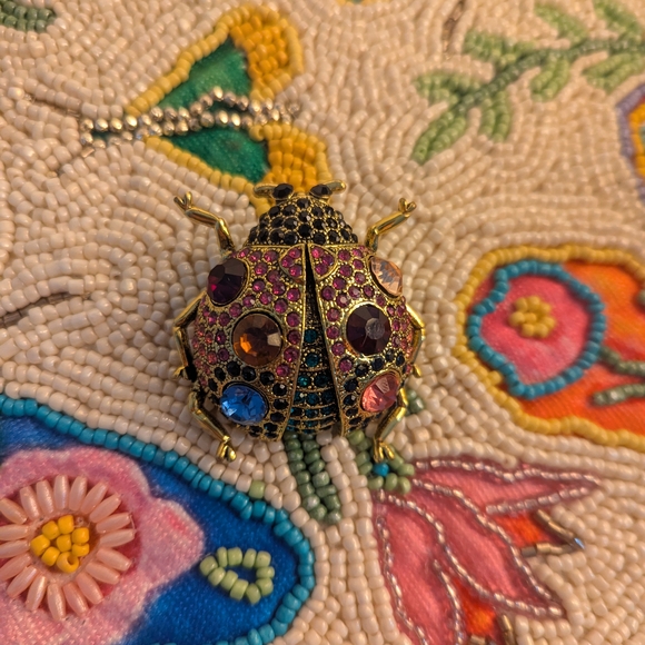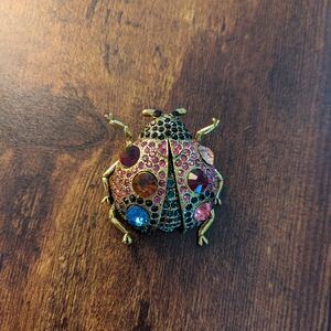 Adorable 2 inch gold and multicolor rhinestone ladybug brooch. Has loop for pendant as well. Even prettier in person.