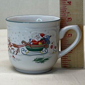2 International Country Christmas Coffee Cup & Saucer Sets Santa Sleigh Cow Pig