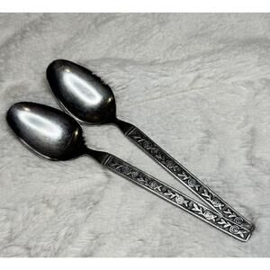 2 Interpur Stainless Flatware Korea FLORENZ 8 Petal Flower Spoons Fleur de Lis