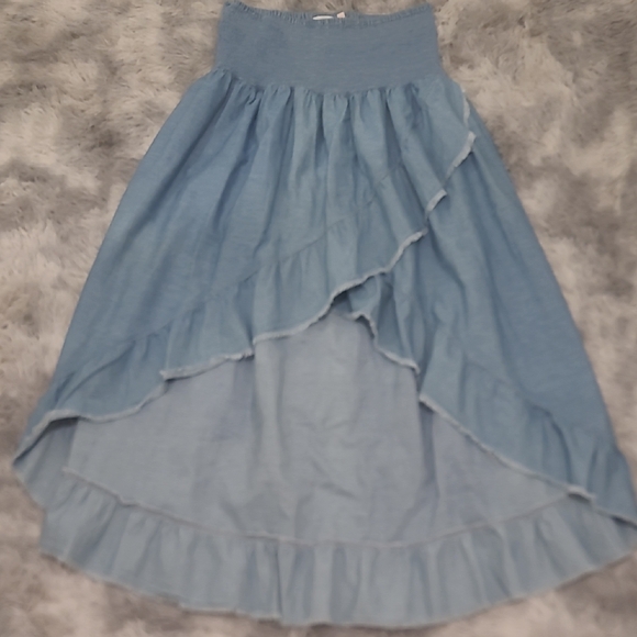 Elegant blue ruffled dress perfect for any occasion. I wore once for a super cute picture in the ocean with a baby bump