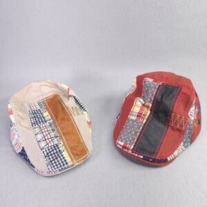 2 Jamont Flat Newsboy Caps Patchwork Multi Color Adjustable Cotton Cabbie