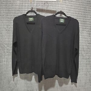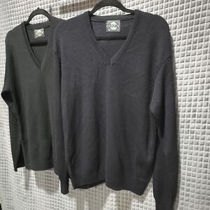 (2) Jantzen SOFT Mens Sweaters SzLg Lot VTG Black Navy Blue Career Casual Staple