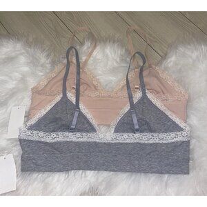 2 Jenni On Repeat Wide Lace Trim Cotton Bralettes Bras Womens XL XLarge New