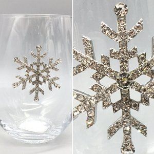 NEW Set of 2 Rhinestone Snowflake Stemless Wine Glasses