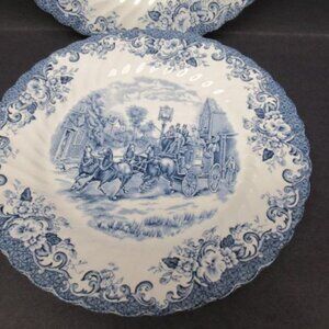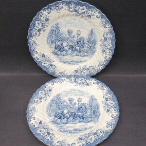 2 - Johnson Brothers England COACHING SCENES Blue 9 7/8 Inch Dinner Plates