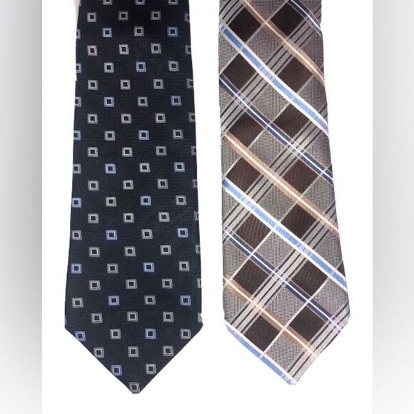 2 Joseph Abboud Men’s Brown Diamond & Blue Patterned Classic Neckties 100% Silk