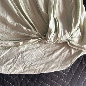 Rewind-light Sage green, lace accents, knot in front. Lightweight.