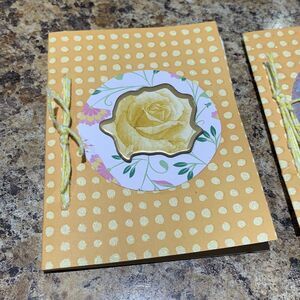 2 Junk Journal Notebooks Handmade Yellow Flowers 3.5x4.5 in
