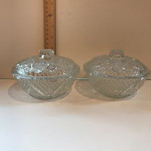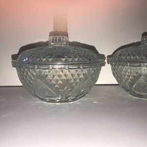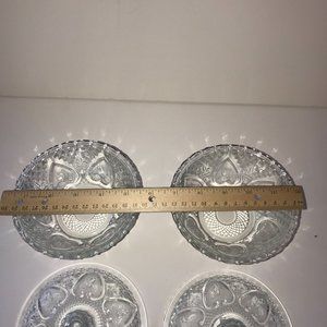 Pair of Vintage 1970's KIG Malaysia Candy Nut Trinket Dish Lid Hearts Roses Fleur-de-lis pressed glass.
