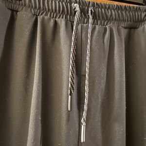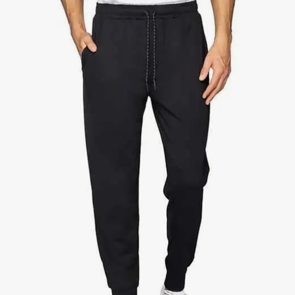 Listing is for two pairs of black joggers, men's size medium. The pants both feature drawstring waist and side zip pockets.