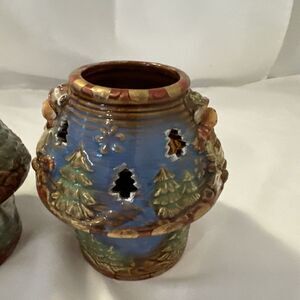 Add a touch of rustic charm to your holiday decor with these Kirkland's Pottery Garden Tealight Holders. Featuring a delightful snowman design, these ceramic candle holders bring a festive spirit to any room. The small size, measuring 5 inches in height and 4.25 inches in width, makes them perfect for tabletops or mantelpiece arrangements.
