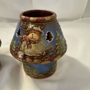 2 Kirklands Potters Garden Christmas Tealight Holder Woodland Santa Snowman