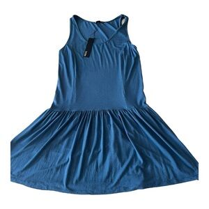 Crafted with a soft, lightweight fabric, these sleeveless dresses features a casual but chic popover that flatters all body types New with tags in Indigo Blue with flattering Scoop Neckline and Royal Purple Double V Neck & Back Drop Waist Mini-Dress Size XS these are brand samples no material tags never sold in stores new with tags blue one has a pin size dot very faint as seen in photo