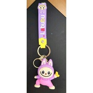 The product is a set of two Labubu Monsters key chains, featuring green and pink silicone figures of the popular character from the animation franchise.