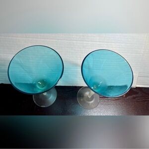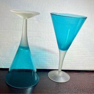 (2) LARGE RARE (VINTAGE) PLASTIC MARTINI GLASSES - IRIDESCENT BLUE (PRETTY)