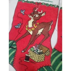 2 LARGE Vintage Rudolph Red Nosed Reindeer Felt Stocking Retro 90s Decor 17" lot