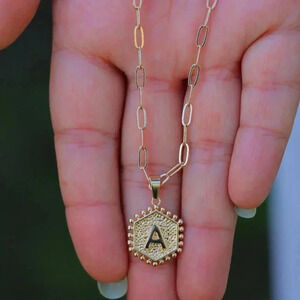 2 LAYER GOLD LETTER INITIAL COIN HEXAGONAL PENDANT DAINTY NECKLACE, ELDM22335