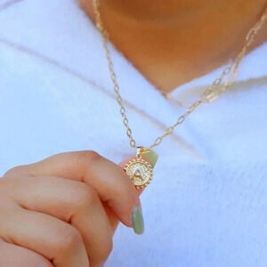 2 LAYER GOLD LETTER INITIAL COIN ROUND/CIRCLE PENDANT DAINTY NECKLACE, ELDM22154
