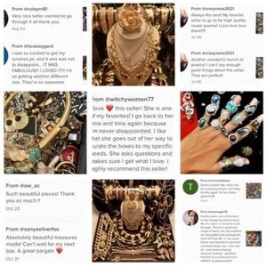 There are signed and unsigned pieces as well as pieces for wear and or resell, which may be tangled or not; jewelry of all ages. I do not have time to list each item individually, so I am passing the savings onto you. Nor do I clean jewelry, for cleaning may compromise the integrity of any piece of jewelry; all cleaning is responsibility of the buyer.