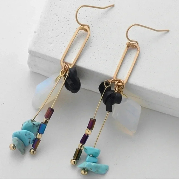 2 LEFT! Opal Dangle Earrings Turquoise Hematite Beads