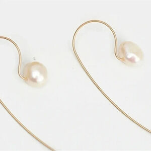 2 LEFT! Pearl Threader Earrings Gold Natural Baroque