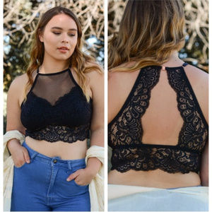 2 LEFT Plus Size High Neck Lace Racerback Bralette
