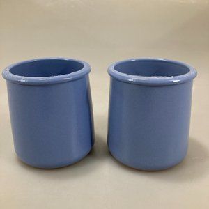 2 La Fermiere Blue Glazed Terra Cotta Yogurt Pots