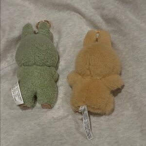 2 Labubu Keychains - Green & Beige