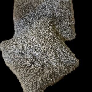 Two gray lamb fur pillow cases. Excellente condition . Zipper on back to remove and wash. Pillow not included. Pictures 3, 10 and video most representative of color .