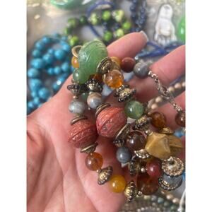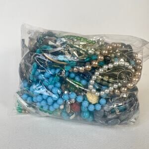 2 + Lbs Wearable Jewelry Lot 80s to Modern 50 pc Boho Glass Acrylic Shell Blue