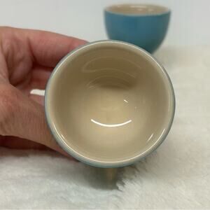 2 Le Creuset Footed Egg Cup Caribbean Blue Holders 3/8" Tall Pair Set NEW