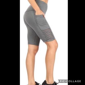 Heather Gray Biker/Workout Shorts w/side panel of mesh. Has wide band & pockets.