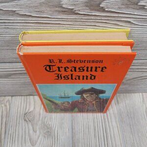 Immerse yourself in the adventurous world of literary classics with this set of two hardcover books: Treasure Island and Huckleberry Finn. Published by Modern Promotions in 1982, these books are part of the Legendary Classics Series and feature captivating illustrations by John Cooper. The pages are filled with the timeless stories of pirates, treasure hunts, and thrilling escapades that will keep you on the edge of your seat from beginning to end.